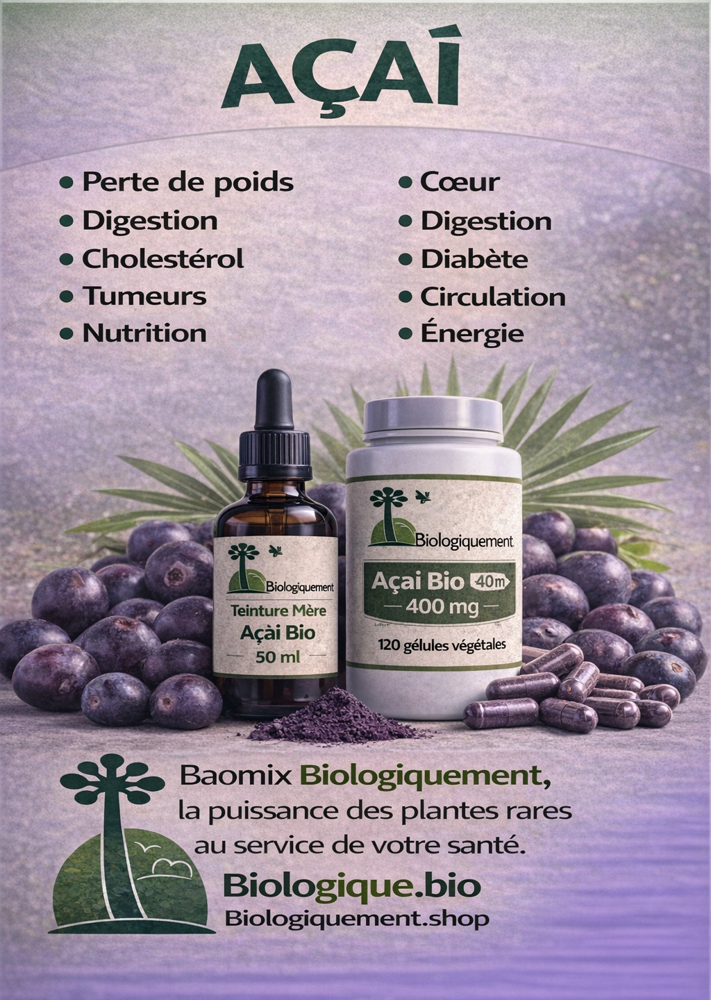👉 Intégrez les gélules d’Açaï bio sauvage dans votre routine quotidienne et profitez de la puissance d’un super-fruit millénaire pour retrouver énergie, équilibre et bien-être.